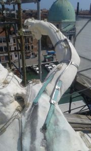 La facciata della Chiesa di Santa Maria di Nazareth che si affaccia sul Canal Grande ha sempre presentato una notevole criticità sulla durabilità del marmo di Carrara di cui è composta. A seguito di un improvviso cedimento di una piccola porzione di fregio si è provveduto alla immediata messa in sicurezza dell’intera facciata mediante un doppio ordine di ponteggi. Attualmente dopo la pulizia e la rimozione e ripristino delle parti incoerenti e la completa mappatura della facciata è allo studio il metodo di intervento che si rivela estremamente complesso per il fortissimo stato di degrado del materiale.