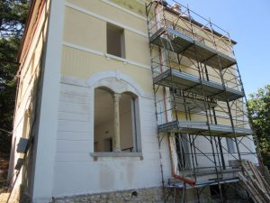 Delle strutture originali sono stati mantenuti unicamente i muri portanti perimetrali e di spina interni mentre tutte le tramezzature, gli impalcati e la copertura esistenti sono stai integralmente sostituiti. Nel piano semi interrato l’altezza è stata aumentata con un scavo realizzato su roccia e che ha comportato la realizzazione in alcuni punti di sottomurazioni in c.a.