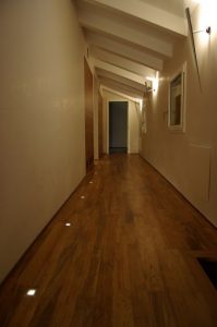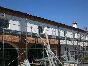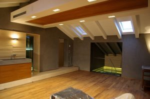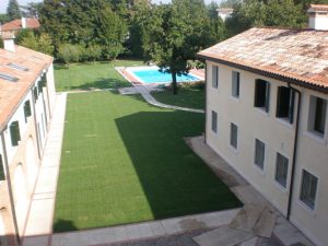 L’intervento insiste in un fabbricato storico (villa Malatesta) in origine suddiviso in 5 abitazioni con ingresso e giardino in comune ma indipendenti negli impianti, trasformato in un’unica abitazione ma con zone ben definite: villa centrale al proprietario, zona est per gli ospiti, zona sud per lo staff, zona ovest per il fitness e SPA. Pur mantenendo tutti i pavimenti alla veneziana e solai in legno di pregio la Faggion ha realizzato i nuovi impianti, i nuovi percorsi interni al fabbricato e tutte le finiture interne di alto pregio. Le coperture di tutti i corpi di fabbrica sono state oggetto di intervento con inserimento di abbaini e nuovo pacchetto isolante. Agli esterni è stato dato un nuovo aspetto con una finitura superficiale in marmorino, inserito in un giardino rinverdito da nuove piante e tappeto verde.